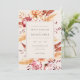 Entwerfen Sie Ihre eigenen personalisierten Hochzeitseinladungen mit elegantem Blumendesign. Fügen Sie in minimalistischer schicker Typografie Ihre persönlichen Daten zu Ihrem besonderen Tag hinzu. Diese Hochzeitseinladung zeigt boho chic Fall Blüte von Aquarell Dahlia Blume und Herbst botanischen Blätter.