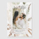 Dieses elegante Design besticht durch atemberaubende würzbraune, moosgrüne und cremefarbene Bouquets mit blühenden Böhmen. Um die Details Ihres Tages zu verbessern, beinhaltet das Drehbuch kalkartige Kalligraphie und Ihr schönes Foto gegen einen durchsichtigen Deckenrahmen. Passen Sie Ihre persönlichen Daten einfach an, um sie zu Ihren eigenen zu machen.