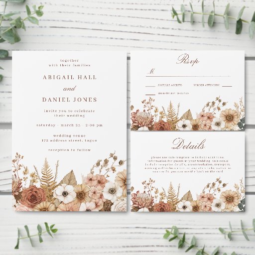 Elegant Boho Floral Wedding Stationery SuiteDesignt von Love in Print Studio