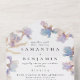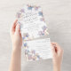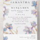 Diese elegante Hochzeitseinladung ist ideal für Hochzeiten im Frühjahr und Sommer. Dieses Design ist mit einem Ring von Aquarellirisen in den Tönen Lila und Perkellblau ausgestattet. Feine Touchs Gold verleihen dem Ganzen ein zauberhaftes Element.