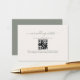 Elegante Gehäuse-Karte mit QR-Code für mehr Informationen, Details und Online-Antwort auf sage grün Farbe Skript und Hintergrund. Verwenden Sie das Tool Personalisieren, um Ihre Informationen hinzuzufügen. Entsprechende Artikel finden Sie in meiner Boho Sage Green Collection.