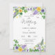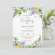 Das ist eine moderne, blumengeschmückte botanische Wildblume-Hochzeitseinladung. Das Design umfasst eine Vielzahl von Sommerfrühlingssommer-Wildblumen, darunter gelbe Daffodien, lila Stiefmütterchen, Kleeblatten, Lavendel, Sweetpeas, Lüstern, Lüstern, Farn und Efeu. Bitte kontaktieren Sie den Designer, um weitere passende Artikel oder gewünschte Änderungen dieses Produkts zu erhalten.