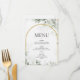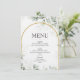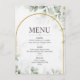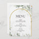 A refined and romantic menu design featuring soft watercolor botanical elements and a delicate gold arch frame. Perfect for weddings, engagements, anniversaries, or upscale dinner events. The layout highlights each course with graceful typography, creating a sophisticated and timeless presentation.