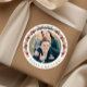 Elegant Botanical Wreath Photo Christmas Classic Round Sticker.