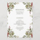 Diese eleganten Hochzeitsfeierlichkeiten bieten eine Aquarellgrenze von Weihnachtsroten Heiligbeeren mit grünem botanischem Blattwerk und Blätter. Ein schlichtes und stilvolles Winterurlaubsdesign mit klassischen, traditionellen Elementen. Ideal für Ihre elegante Winterhochzeit und eine einfache Möglichkeit, Ihre Zeremonie und Namen Ihrer Hochzeitsfeier zu präsentieren.