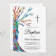 Mit dieser stilvollen Einladung laden Sie Familie und Freunde zur Taufe Ihres Babys ein. Es verfügt über einen Stammbaum in den Farben des Regenbogens und ein Kreuz. Einfach anpassbar mit Ihren Daten. Dieses einzigartige Design ist ein Ausdruck eines Mosaiks der Familie Tree, das aus winzigen Teilen aus farbenfrohen Glas hergestellt wurde. Weil wir unsere eigenen Kunstwerke erstellen, werden Sie dieses exakte Bild von anderen Designern nicht finden. Original Mosaik © Michele Davies.