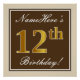 Elegant, braun, Imitate Gold 12. Geburtstag + Name Poster
