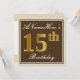 Elegant, braun, Imitate Gold 15. Geburtstag + Name Einladung