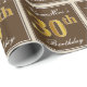 Dieses schlichte und elegante Verpackungspapier-Design enthält eine personalisierte Botschaft wie "NameHere’s 30th Birthday" (mit dem "30th" mit einem Imitat/Imitation goldenem Farblook) in einem braunen quadratischen Bereich mit einer schlichten Kontur an den Rändern. Der Name ist in einem eleganten, weiß gefärbten, skriptähnlichen Text und kann angepasst werden. Papier wie dieses könnte vielleicht benutzt werden, um Geburtstagsgeschenke für jemanden zu verpacken, der seinen dreißigsten Geburtstag feiert. [~Z0000223]