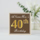 Elegant, braun, Imitate Gold 40. Geburtstag + Name Einladung