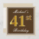 Elegant, braun, Imitate Gold 41. Geburtstag + Name Einladung