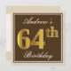 Elegant, braun, Imitate Gold 64. Geburtstag + Name Einladung