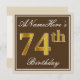 Elegant, braun, Imitate Gold 74. Geburtstag + Name Einladung