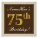 Elegant, braun, Imitate Gold 75. Geburtstag + Name Poster