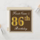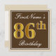 Elegant, braun, Imitate Gold 86. Geburtstag + Name Einladung