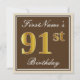 Elegant, braun, Imitate Gold 91. Geburtstag + Name Einladung