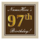 Elegant, braun, Imitate Gold 97. Geburtstag + Name Poster