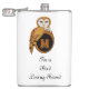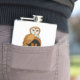 Eine elegante Britische Scheuneneule wird von der Seite gezeichnet, wobei der Kopf über die Schulter schaut. Unter dem Vogelflügel ist ein Monogramm-Augapfel geschachtelt. Das M ist für Monogramm kurz und kann für Ihren ersten Einsatz personalisiert werden.