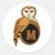 Elegant British Barn Owl Monogram Runder Aufkleber