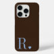 modern stylish brown dusty blue monogram initial iPhone iPhone 15 pro case.