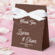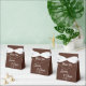 Herzlich willkommen in Ihren eleganten, maßgeschneiderten Hochzeitsgeschenkboxen, die für Ihre Gäste einen zeitlosen Sake machen. Diese wunderschönen Gefälligkeitsboxen verfügen über einen schicken braunen Script-Schriftart mit Namen und Hochzeitstermin. Sie sind der perfekte Weg, um ein herzliches Geschenk und eine bleibende Erinnerung aus Ihrem besonderen Tag zu teilen.