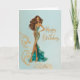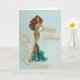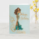 Elegant Brunette in Gold Teal Fashionista BDay Karte