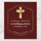 Elegant Burgundy Gold Cross Boy's Bestätigung Weinetikett