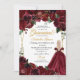 Elegant Burgundy & Gold Floral Quinceanera Invita Einladung
