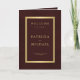 Modern simple minimalist typography deep burgundy and faux gold folded ceremony and party wedding program template on a vintage style antique distressed looking background. ++++++++++++ Easy to personalize with your text on the front, back and inside!