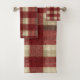 Elegant Burgundy Ivory Rust Red Plaid Pattern Badhandtuch Set