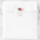 Klassisch schicke rustikale Pärchennamen bedanken sich bei einem runden Aufkleber auf der Gastgeschenk Hochzeit mit einem dunkelroten Typografie-Script vor einem klaren, weißen Hintergrund. ++++++++ Persönlich mit den Namen der Braut und des Bräutigams und mit Ihrem eigenen Text!