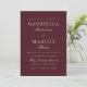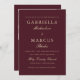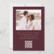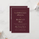 Diese einfache und elegante Hochzeitseinladung zeichnet sich durch eine schöne dunkelburgundische Farbe aus, die klassisch goldfarbene weiße Typografie koordiniert. Auf der Rückseite finden Sie ein individuelles Foto und einen uAwg qr-Code, sodass Sie auf Ihrer Hochzeitswebsite reagieren können.