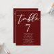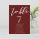 Elegant Burgundy Wedding Tischnummer Card mit Name