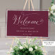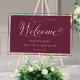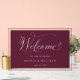Machen Sie eine Erklärung und begrüßen Sie Ihre Gäste zu Ihrer Hochzeit mit diesem eleganten bordeauxfarbenen Acrylzeichen! Möglichkeit, dieses Zeichen für jedes Ereignis zu verwenden. Design mit elegantem und elegantem Rahmen in attraktiver Bordeaux-Farbe und schönen, modernen handschriftlichen Kalligrafiedetails in Weiß. 12" x 18" ist unsere Standardgröße, Sie können aus mehreren Größen Optionen wählen. "HINWEIS: Kleine Größen sind mit einem Holzblock versehen, größere Größen benötigen einen Aal oder eine Oberfläche, um zu stehen, sodass sie nicht zerreißen. Abmessungen des Zeichens aus dem Demo-Foto mit Stand: 24" x 36"