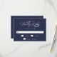 Diese atemberaubenden Hochzeitskarten mit RSVP sind mit einem modernen, Wirblen, eleganten, weißen Kalligraphieskript auf dunkelblauem Hintergrund ausgestattet, das auf beiden Seiten der Karte für ein klassisches und dennoch aktualisiertes Design sorgt.
