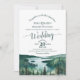 This beautiful wedding invitation features a rustic yet beautiful design with lacy calligraphy and a watercolor landscape of Lake Tahoe with mountains and pine trees. The back has room for you to list details and information along with a customizable QR code to direct your guests to your wedding website for information and/or to RSVP. The invitation is designed so that it will work well with a standard or an arch cut. Stylish, elegant, posh, and glam, this invitation will make a lasting impression and is a wonderful way to invite your guests to share in your joy on your special day.