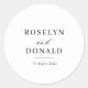 Stylish calligraphy black and white wedding sticker with custom text details.