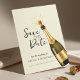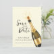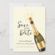 An elegant Save the Date wedding design featuring a soft cream background with champagne gold accents and a celebratory champagne bottle illustration. This refined style blends warmth and modern luxury, making it perfect for classic, formal, or upscale weddings. Ideal for couples seeking a timeless yet stylish announcement that sets an inviting and sophisticated tone for their wedding celebration.