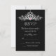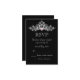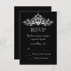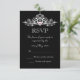 Elegantes Hochzeitstil-RSVP-Kartendesign mit einem hochgradig detaillierten silbernen Kronleuchter auf schwarzem Hintergrund. Dieses Design kommt auf mehrere Schreibwaren, um ein schönes Thema für alle Ihre Hochzeitsarbeit.