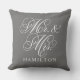 Elegant Charcoal Mr. und Mrs. Script Custom Monogr Kissen