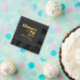 Fügen Sie Ihrer 70. Geburtstagsparty eine Touch Eleganz hinzu. Das Design enthält die Worte "Cheers to 70 years" in Goldfolie auf schwarzem Hintergrund. Sie können das Design mit dem Namen der Geburtstagsfeier und dem Datum personalisieren. Copyright henishouseuse paper
