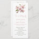 Diese raffinierte Zeremonielekarte zeigt zarte Kirschblütenbilder in sanftem Rosa und Grün, die Ihrem Fest ein Gefühl von natürlicher Schönheit und Eleganz verleihen. Das gepflegte, minimalistische Layout verwendet klassische Serif-Schriftart, um Klarheit zu schaffen, mit einem frischen, weißen Hintergrund, der das Blumenwerk hervorhebt. Einzelheiten zur Zeremonie und die Informationen zu den Hochzeitsfeiern werden sorgfältig organisiert, um sie leicht zu lesen. Dieses Design ist perfekt für Frühjahrs-, Garten- oder Hochzeitsfeiern im Freien geeignet und bietet eine Touch von Romantik und Eleganz.
