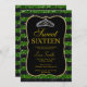 Schwarz-Grün-Imitate Glitzer elegante moderne und schlichte Printmedien, Sweet 16 Celebration Party Einladungen. Sehr klassisches und raffiniertes Design für die stilvolle Geburtstagsfrau. Text kann auf alles geändert werden, was zu Ihrer Veranstaltung passt. Schriftart, Schriftart und Text sind vollständig anpassbar! Papierform und -typ können an Ihr Budget und Ihren Geschmack angepasst werden!