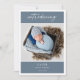 Welcome your precious bundle of joy with this elegant chic classic photo baby announcement card. The design offers a clean blue and white timeless layout to display your newborn's first portrait, names and birthdate. The style calligraphy script adds a fantastic look to the template. Whether you’re welcoming a baby girl or baby boy, this design offers a beautiful way to introduce your newest miracle to the world.