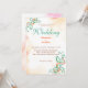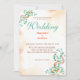 Das Design zeichnet sich durch hellorangefarbene Aquarellsteine und simulierte Flecken aus. Das Design enthält auch Eukalyptuszweige und andere hellorange Elemente in dunkelorangen Tönen, und mehr, um alle Jahreszeiten, in denen Ihre Hochzeit fallen kann, und Farben, die die Farbe erröten. Die Rückseite der Einladung hat eine schöne Braut und Bräutigam Monogramm.