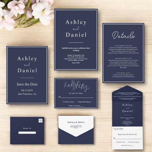 Minimal Chic Navy Blue White Wedding CollectionDesignt von Mohamed Sherif