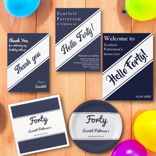 Elegant Navy Blue White Modern Chic BirthdayDesignt von Mohamed Sherif
