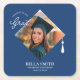 This custom graduation party square coaster featuring elegant, chic and modern script calligraphy and stylized photo design, add your personalized photo and information to make it unique and memorable. Perfect for high school, college, and / or university celebrations.