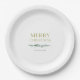 Bring timeless elegance to your holiday table with this minimalist Christmas paper plate featuring soft watercolor evergreen branches and refined golden typography.