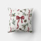 Add festive charm to your home with this elegant Christmas throw pillow featuring a vintage-style watercolor pattern. The design is filled with classic holiday elements—bows, ribbons, pine branches, holly, berries, pine cones, and twinkling stars—creating a warm red and green botanical look that feels timeless and inviting. Perfect for holiday décor, company lobbies, seasonal entertaining, or anyone who loves classic Christmas accents, this pillow also makes a lovely holiday gift for her.